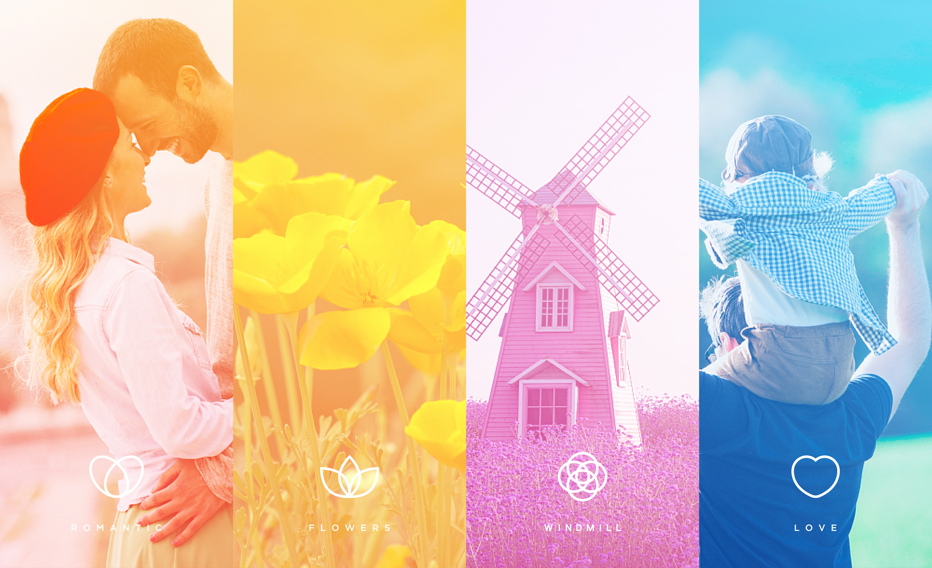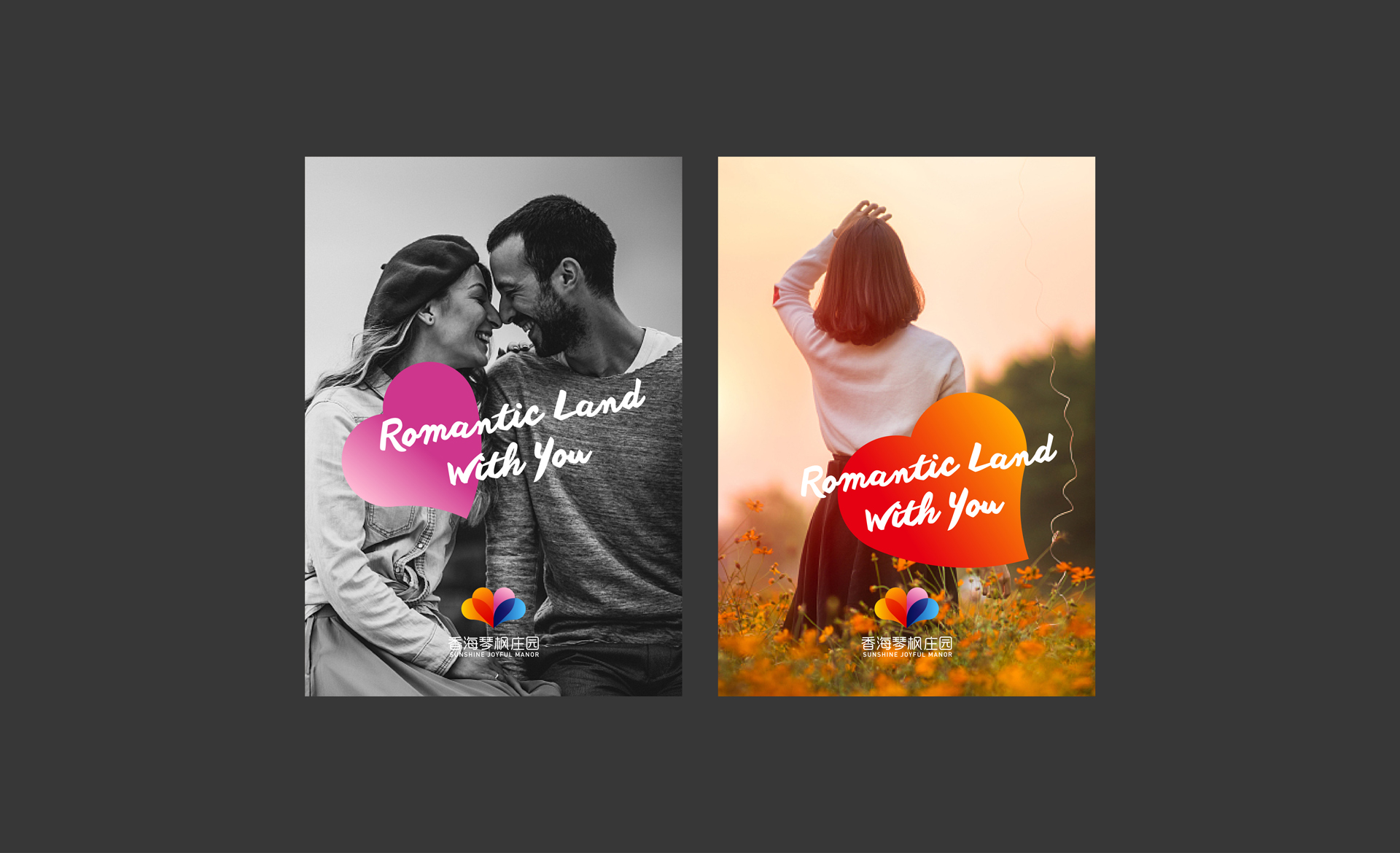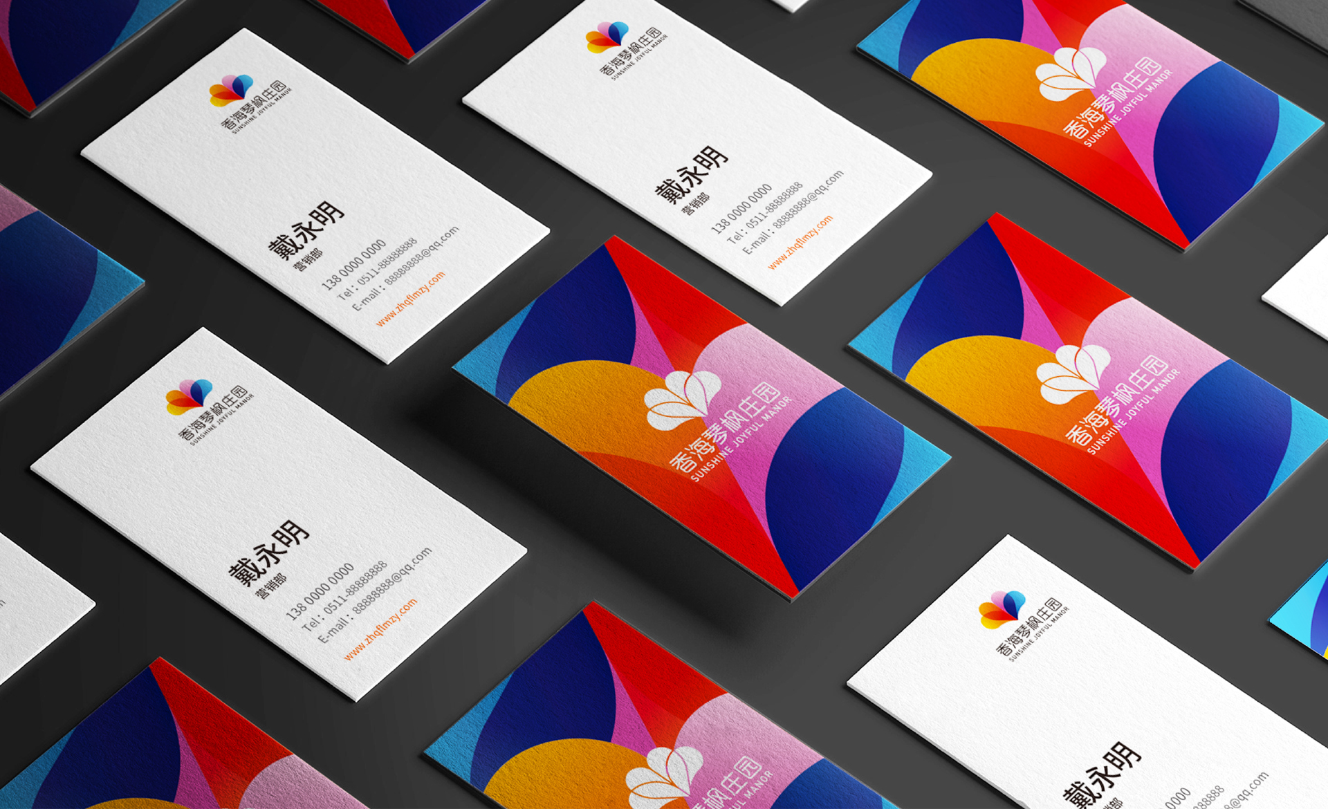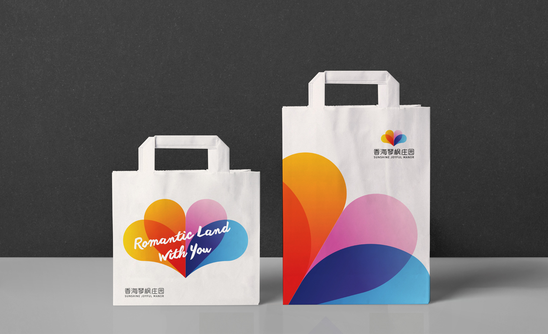 隨著品牌發展,香海琴風對品牌進行了全新的定位,定位為浪漫地標。此次設計圍繞著浪漫地標,愛的聚集地為核心設計點,結合了香海琴風莊園內花田的元素,設計出了一款多彩,綻放形態的logo,用視覺烘托出浪漫的品牌形象。